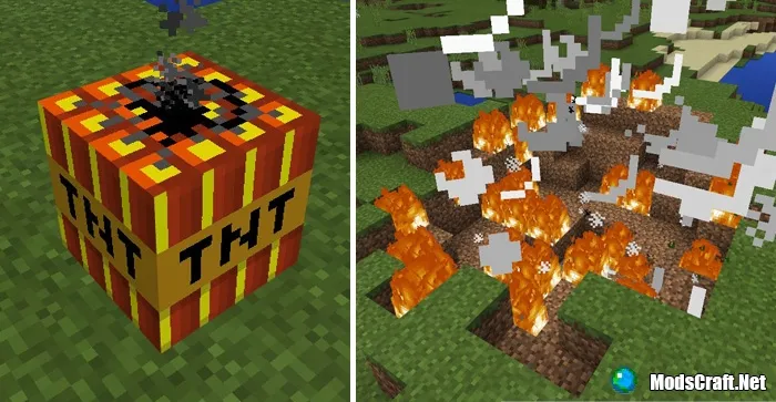 Огненный динамит (заменяет TNT) при взрыве поджигает область.