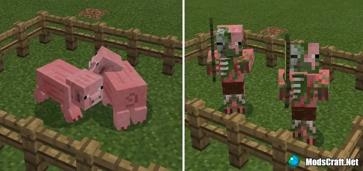 Свиньи теперь могут превратиться в зомби-свиночеловека, если вы коснетесь их. Если вы боитесь обычных зомби, то найдите несколько свиней, превратитьеих в зомби-свинолюдей и они будут охранять ваш дом, ведь обычные зомби всегда будут атаковать их.