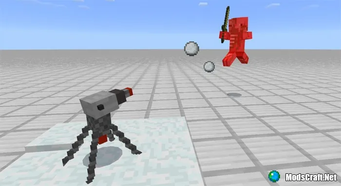 Робот-раздатчик: стреляет тремя разными видами снарядов (стрелами, снежками или огненными шарами) в других мобов (не монстров) и игроков.