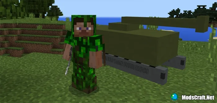 Мод Mine-Tanks добавит в Minecraft Pocket Edition танки, с помощью которых Вы сможете бороться против монстров! С данным модом появится два танка, которые отличаются лишь камуфляжем.