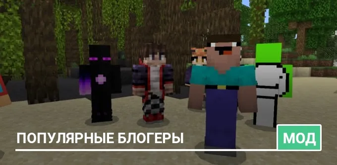 Мод Blogers Addon добавляет новых НПС в виде различных блогеров: Лололошка, Градус, Компот и многие другие. Аддон может вам помочь в создании видео или иных целей. Всего доступно 40 популярных блогеров по Майнкрафту.