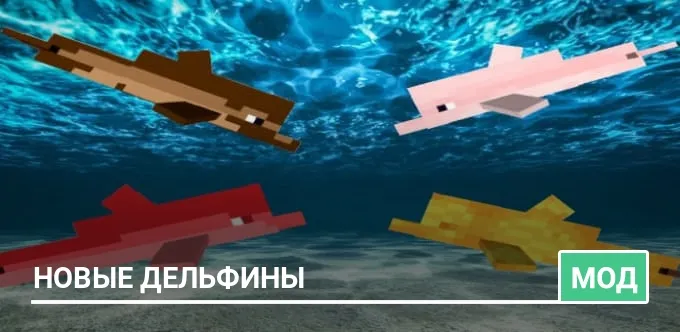 Мод Dolphins Extra добавляет в Minecraft больше новых вариаций дельфинов, некоторые из них выглядят забавно, а другие очень странно!…