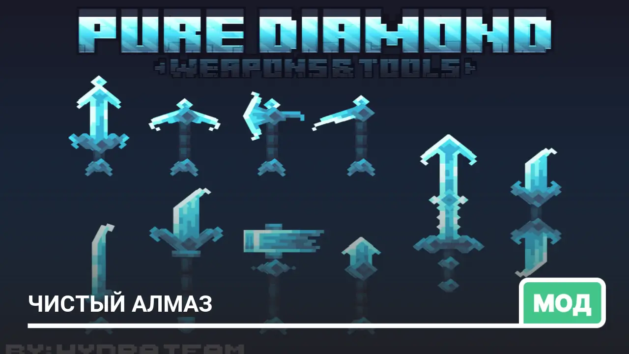 Мод добавляет Чистый алмаз для создания прочного и светящегося оружия и инструментов в Minecraft PE…