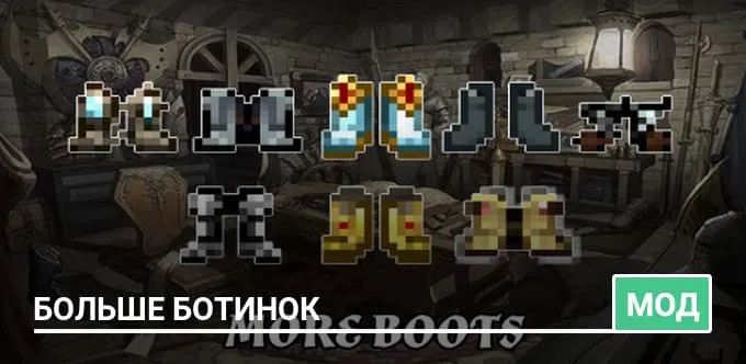 С модом MORE BOOTS вы сможете создать много новых ботинок, которые дадут вам различные эффекты…