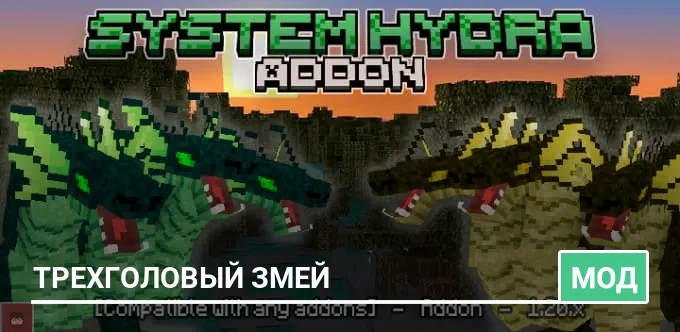С модом System Hydra в Майнкрафт появится новый величественный босс, представляющий собой трехголовую змею с зеленой чешуей…