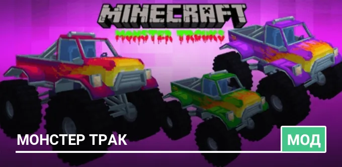 С модом Masher Monster_Trucks для Майнкрафт вы сможете преодолевать любое препятствие на огромных монстр траках…