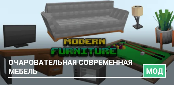 С модом EnchantEase Modern Furniture в Minecraft появится стильная современная мебель и гарнитура, отлично подходящая для создания интерьера в стиле модерн!…