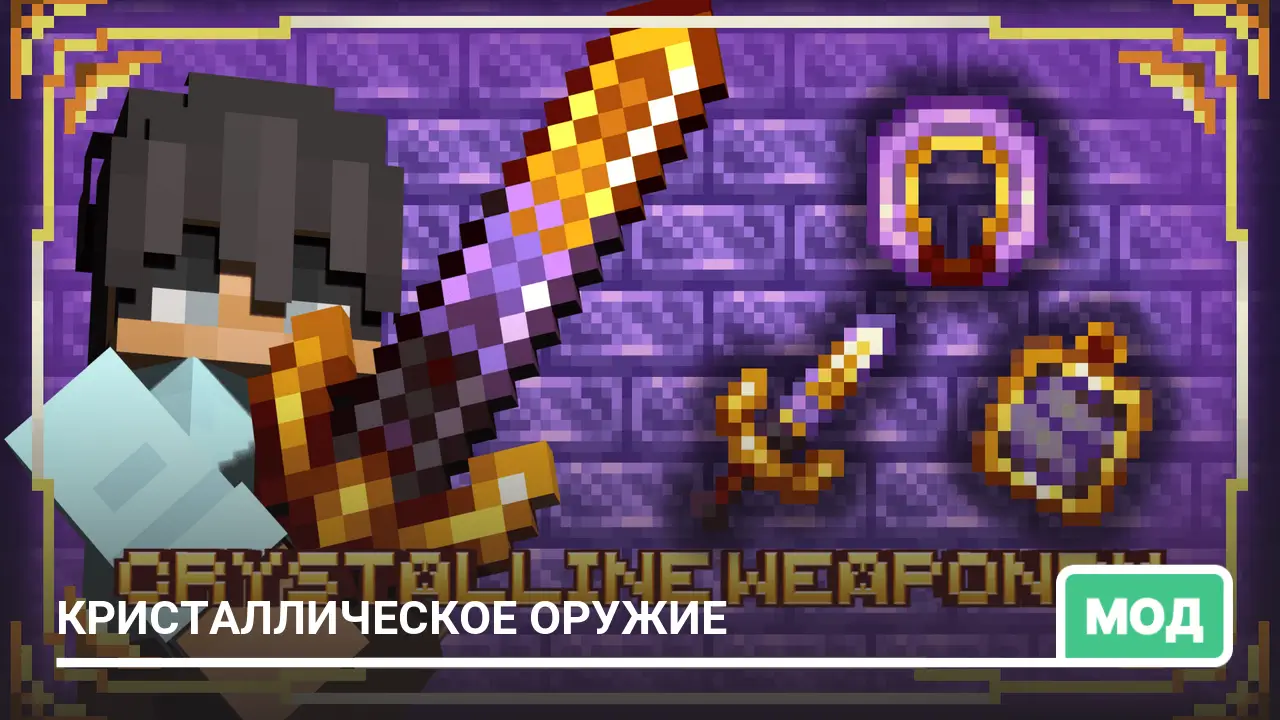 Мод Crystalline Weaponry добавляет кристаллические мечи, щиты, броню и зеркала, а также множество декоративных блоков для украшения базы…