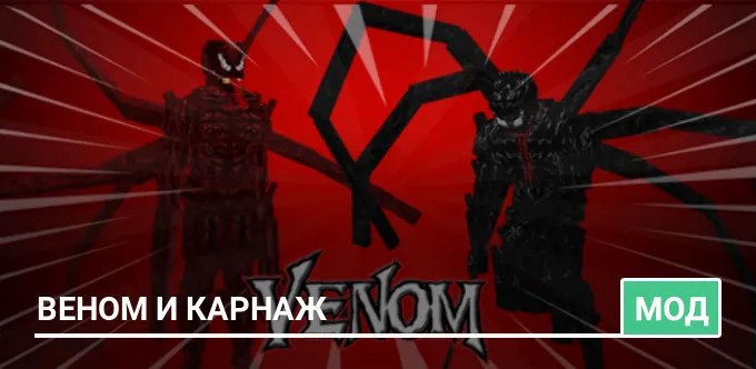 С модом Venom and Cranage для Майнкрафт вы сможете превратиться в одного из симбиотов, Венома или Карнажа…