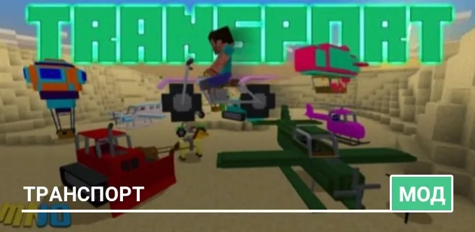 Мод Transport поможет вам передвигаться по миру Майнкрафт ПЕ на различном транспорте от обычного мотоцикла до воздушного шара…