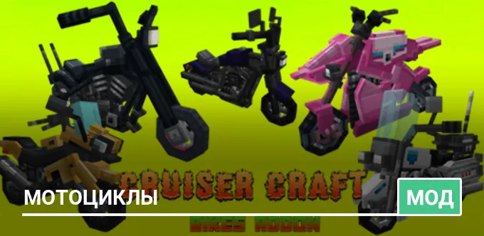 С модом Cruiser Craft Motorbikes для Майнкрафт в вашем распоряжении будут разнообразие мотоциклов, для путешествия по блочному миру…
