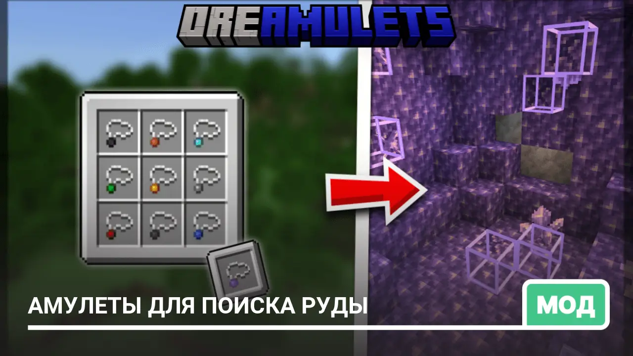 Данный аддон добавляет 10 магических амулетов, подсвечивающих руду через стены в радиусе 7 блоков…