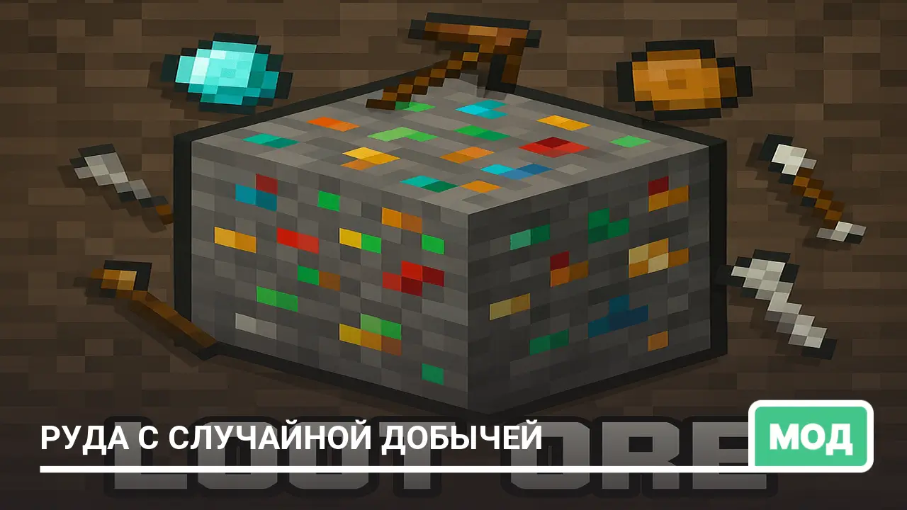 С модом Random Loot Ore в Майнкрафт начнёт появляться новая руда, из которой может выпасть случайный материал, от 1 до 5 штук…