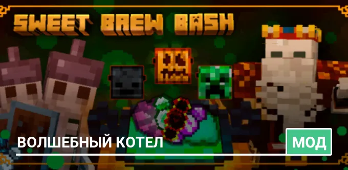 С модом Sweet Brew Bash для Майнкрафт вы приблизите себя к празднику Хэллоуин, ведь появятся конфеты волшебный котел и т.д…