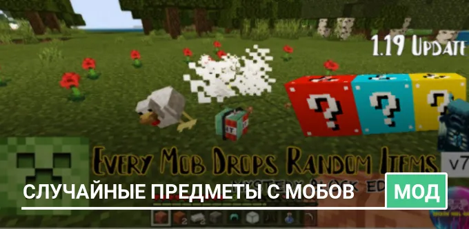 Мод Minecraft But Every Mob Drop Random Item Mystery добавляет случайный дроп различным мобам и животным в игре…