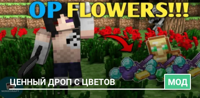Мод Minecraft, but Flowers drop OP Loots для Майнкрафт подарит вам кучу эмоций, когда вы будете получать ценные предметы с цветов…