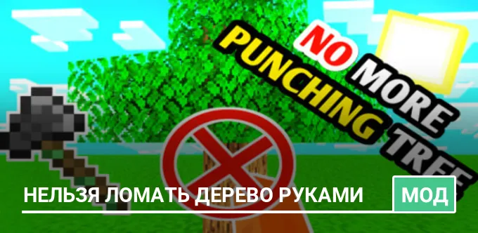 Мод No More Punching Tree для Майнкрафт усложнит вашу игру, ведь вы не сможете рубить деревья рукой…