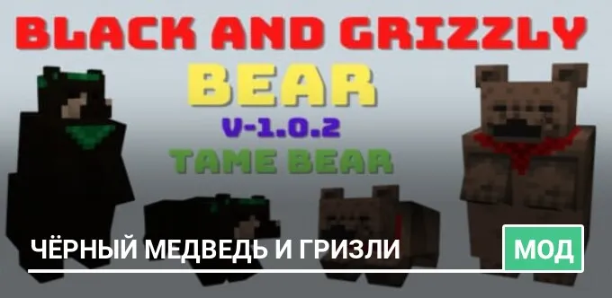 С модом Black and Grizzly Bear в мире Minecraft появятся новые виды медведей — чёрный и гризли, имеющие уникальное поведение…