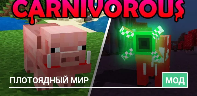 Аддон «Carnivorous World» для Minecraft PE превращает почти всех мобов из Верхнего мира в кровожадных враждебных существ. Текстуры мобов также меняются вместе с моделями, поэтому вы можете легко их идентифицировать.