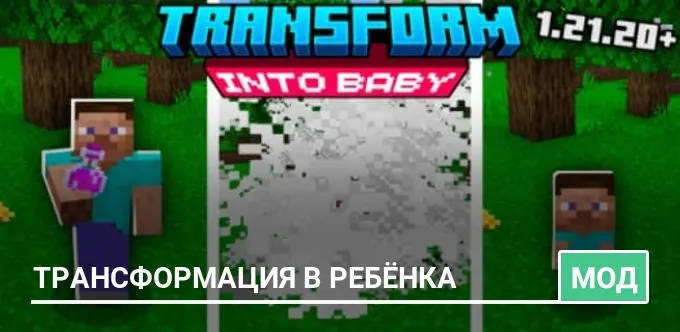 С модом Transform into Baby у вас в Майнкрафт ПЕ появится 2 новых зелья, одно из них будет превращать игрока в ребёнка, а другое во взрослого…