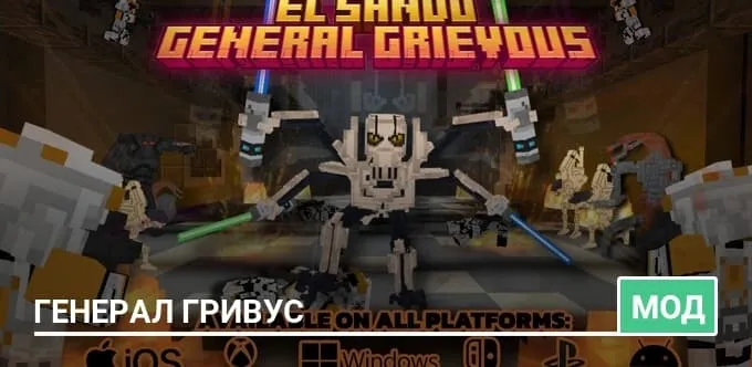 Генерал Гривус и его армия дроидов вторглись в мир Minecraft — с модом GENERAL GRIEVOUS тебе предстоит остановить захватчиков и вернуть порядок в галактику…