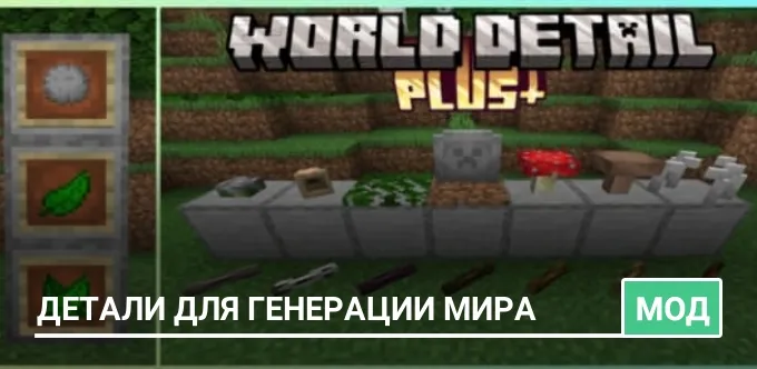 Мод World Detail Plus+ добавляет в генерацию биомов Майнкрафт новые небольшие детали — камушки, грибы, упавшие деревья и многое другое…