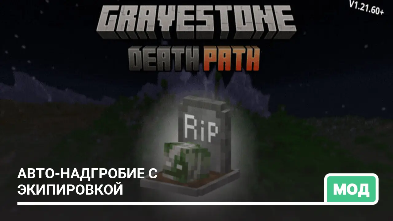 Мод Gravestone – Auto Equip System хранит вещи в Надгробии после смерти. Система автоэкипировки возвращает предметы, а Ключ с координатами помогает найти дорогу обратно…