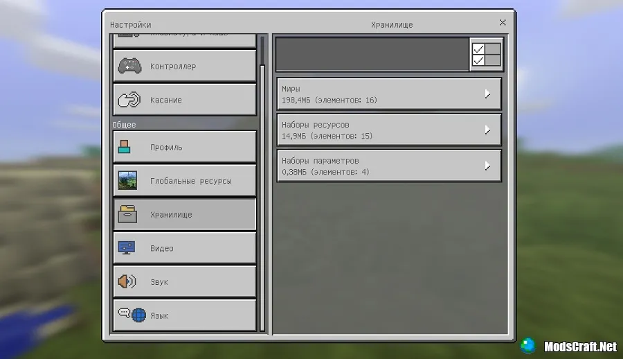 - Добавлено хранилище в настройках, которое позволяет управлять мирами, ресурс паками и наборами параметров