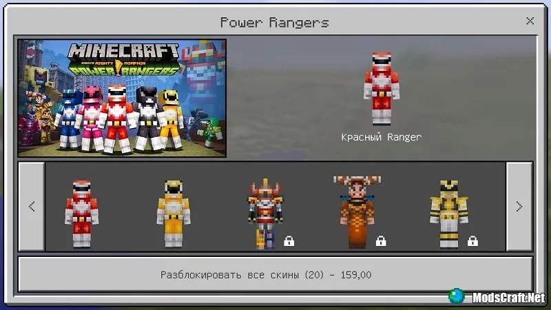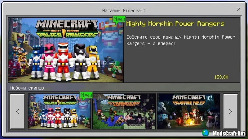 В магазине MCPE Вас будет ждать новый набор скинов «Mighty Morphin Power Rangers» («Могучие Рейнджеры»). Интересно то, что уже 23 марта выйдет одноименный фильм и видимо кинокомпания захотела заказать рекламу своего фильма в одной из самых популярных мобильных игр =)