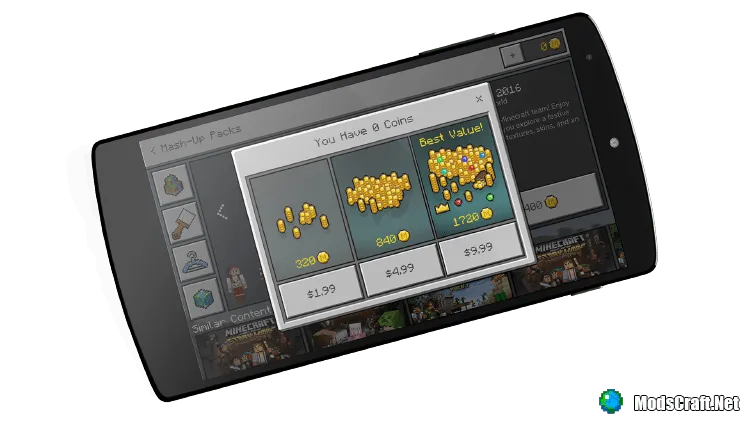 Именно для этой возможности мы и вводим Майнкрафт Монеты, которые можно будет купить прямо в игре на вашем устройстве. Разработчики смогут устанавливать гибкие цены на свои товары, тем самым они и будут получать свою долю от каждой продажи. При покупке набора скинов или карты, магазин может забирать около 30%, но всё остальное будет доставаться авторам.