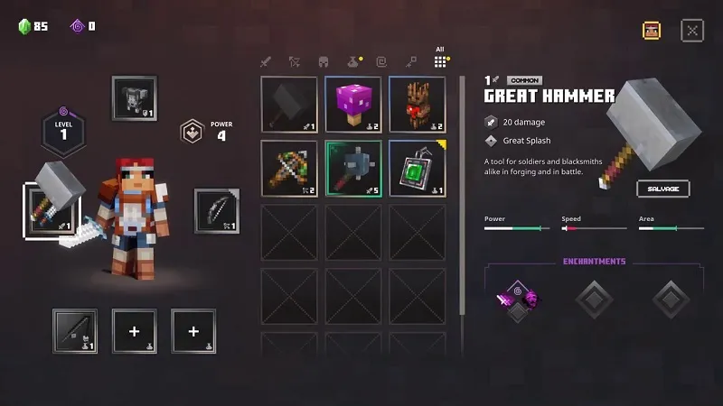 Игрок сможет экипировать своего персонажа различными предметами, покупать у жителей предметы за изумруды и прокачивать чары с помощью очков чар.