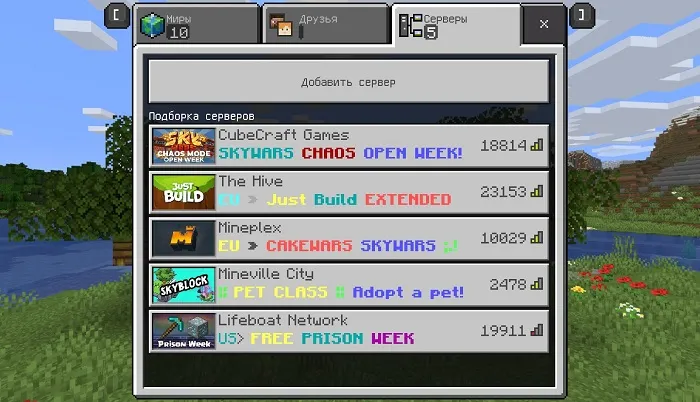 В Minecraft Bedrock Edition доступно пять официальных серверов-партнёров.