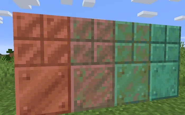 • Процесс окисления каждой стадии медного блока занимает 50-82 игровых дней (в загруженных чанках).