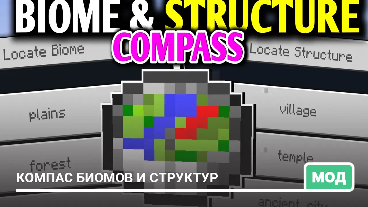 Мод добавляет специальный компас, который укажет путь к нужному биому или структуре, упрощая исследования мира…