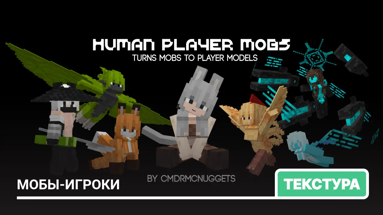 Этот текстур пак меняет всех мобов на модели игроков, добавляя разнообразие и делая их внешний вид более человечным…
