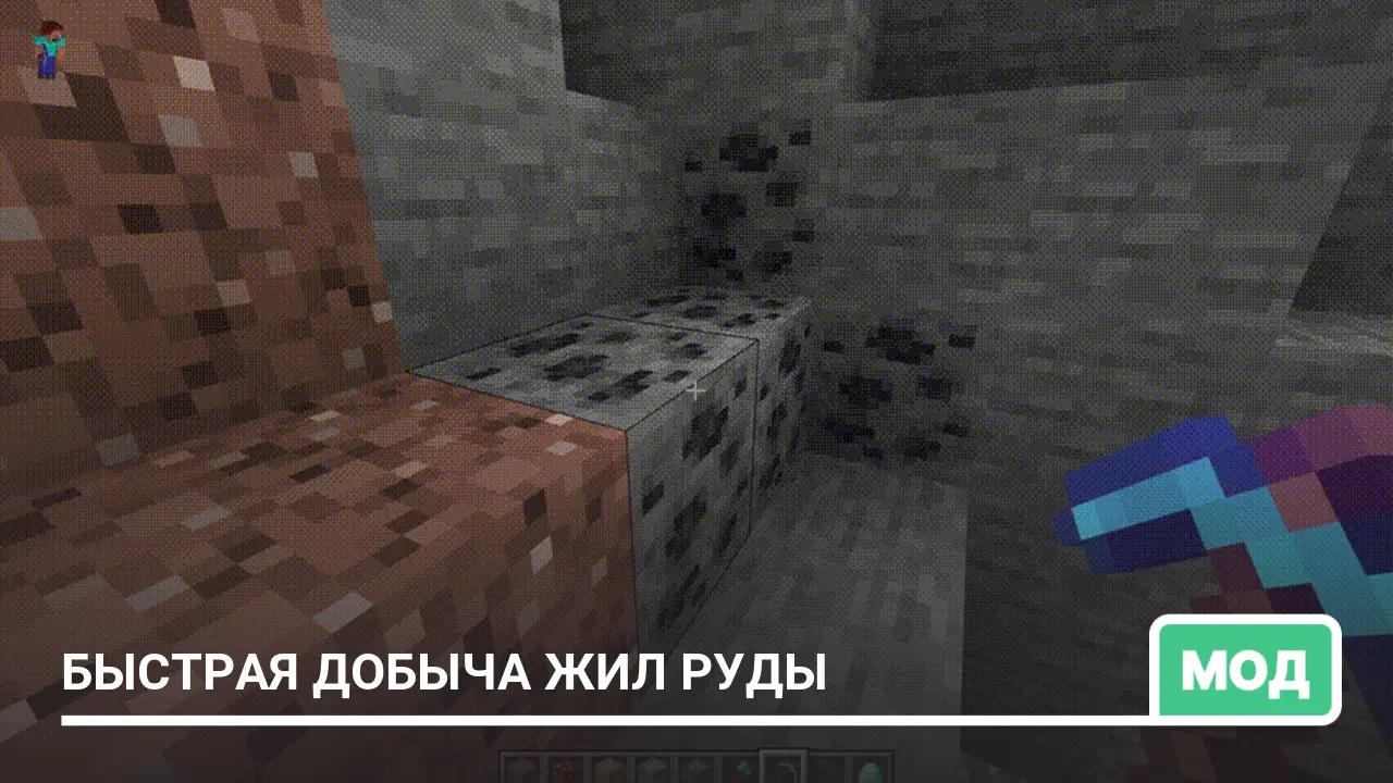 Мод позволяет разрушить всю жилу руды, сломав лишь один блок при приседании, что ускоряет и упрощает добычу…