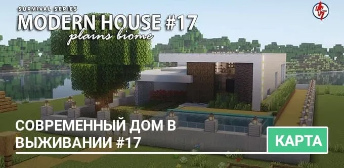 На карте Survival Modern House #17 создан стильный и полностью готовый к выживанию дом, который идеально вписывается в выбранный биом…