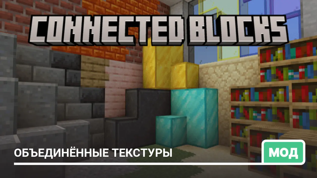 Мод Connected Textures делает блоки визуально цельными, объединяя их границы для более плавных и реалистичных построек в Minecraft…