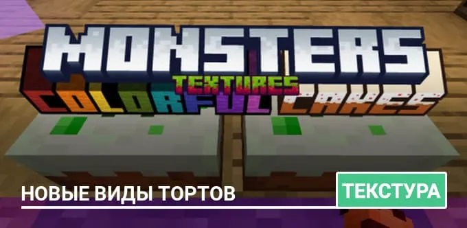 С текстур паком Monsters Textures: Colorful Cakes торты в Майнкрафт приобретут новый вид, с которым они станут выглядеть более празднично!…