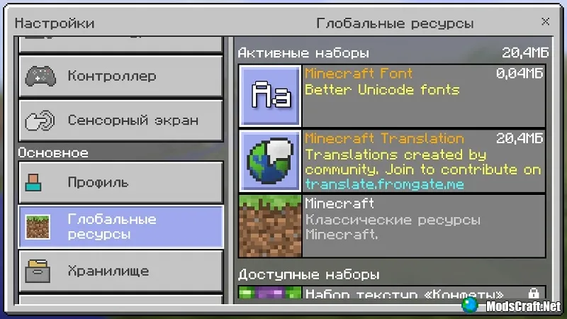 Запустите Майнкрафт ПЕ и активируйте ресурспак «Minecraft Translations».