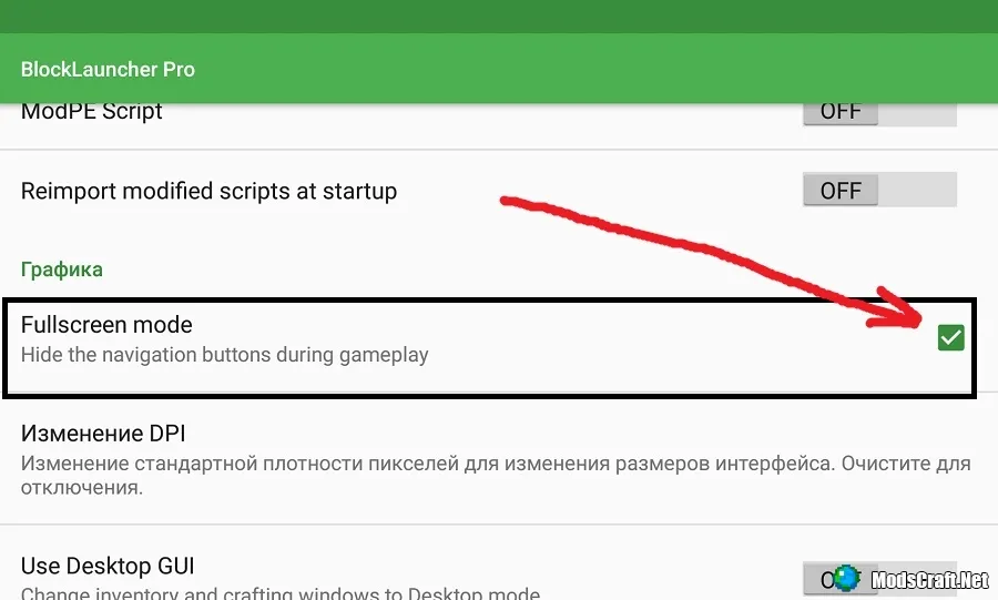 Если в игре через лаунчер вам мешают экранные кнопки вашего Android устройства, то зайдите в настройки BL. Найдите там пункт Графика и поставьте галочку на Fullscreen mode. Теперь играть станет намного удобнее!