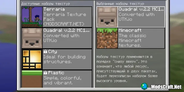 Текстура автоматически активируется и если вы захотите её отключить, то зайдите в Настройки -> Наборы текстур, нажмите на текстуру в правой части экрана, а затем нажмите на стрелку влево.