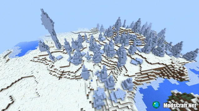 С этим сидом вы встретите огромную ледниковую тундру которая находится неподалёку от спавна. Когда вы появились в мире, перед вами, немного левей будет снежный биом, когда вы начнете немного ближе подходить к биому, то вы сможете увидеть ледяные шипы.