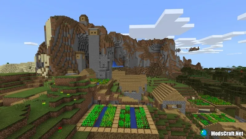 Деревня у утеса это отличный сид для Minecraft Pocket Edition, с которым Вы сможете попасть в удивительную деревню, сгенерированной у утеса.