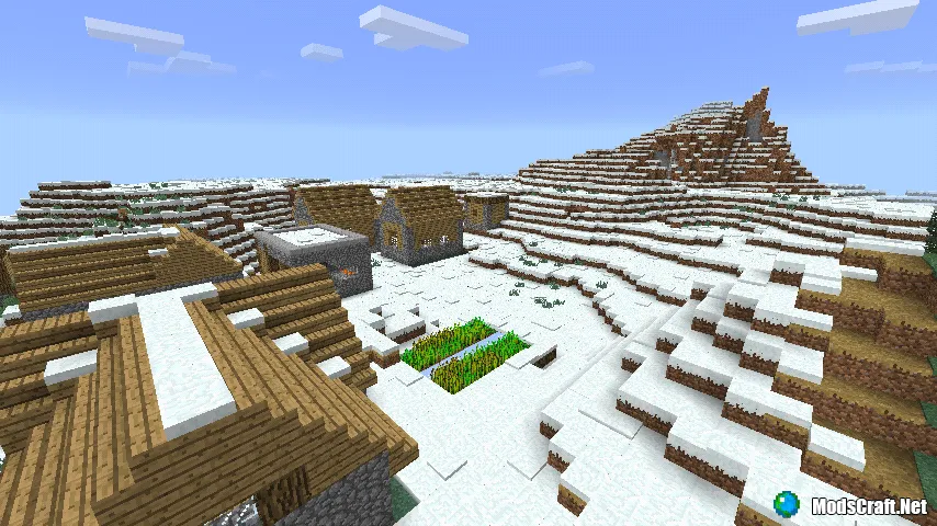 Сид на деревню в снежном биоме. Идеально подойдет для вашего выживания. Как только вы заспавнитесь, начните лететь прямо и вскоре вы увидите деревню, которая находится в снежном и обычном биоме.
