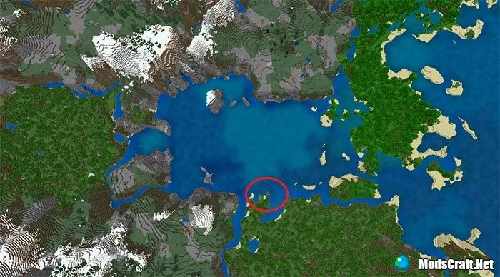 Ниже Вы можете увидеть выделенную красную область, которая является точкой спауна. Вы также можете изучить множество других биомов (например, джунглевый, горный или дубовый лес).