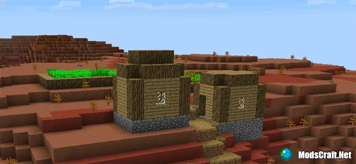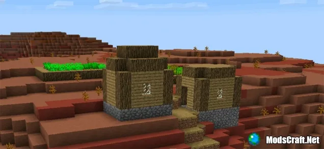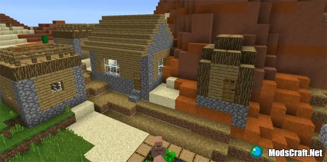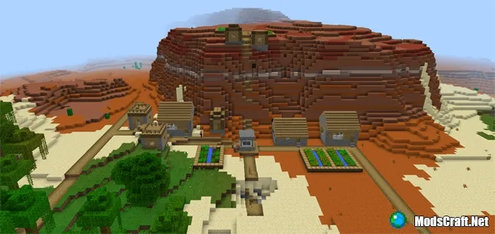 Деревни в биоме, под названием "Меса" не существуют, но все же есть некоторые ошибки в создании местности. Это тот самый случай, когда мы можем увидеть деревню по среди самого необычного биома в Minecraft Pocket Edition. Это действительно круто, так как некоторые здания сгенерировались на небольшой вершине горы!
