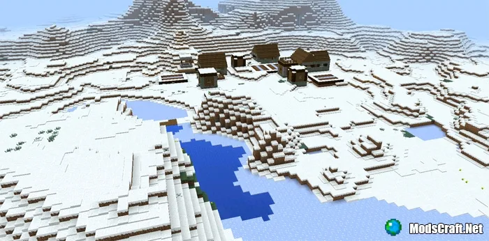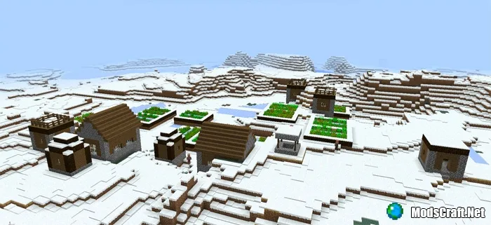 В этой деревни нет кузницы, но она полностью находится в снежном биоме.
