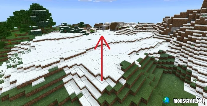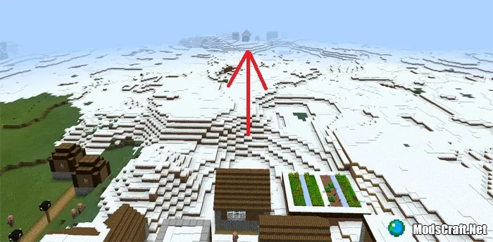 Продолжайте своё движение прямо мимо первой деревне в снежном биоме, чтобы добраться до второй деревни.