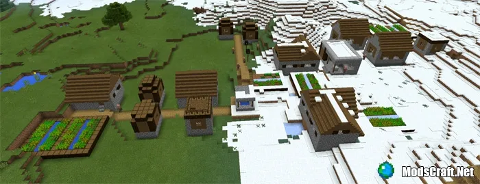 Данный сид демонстрирует новую генерацию снежных деревень в Minecraft Pocket Edition 0.15.0. Дома в зимнем биоме выглядят темнее, чем в обычных деревнях. Это очень интересный сид, ведь он сгенерирует сразу три различные деревни, расположенные очень близко друг к другу.